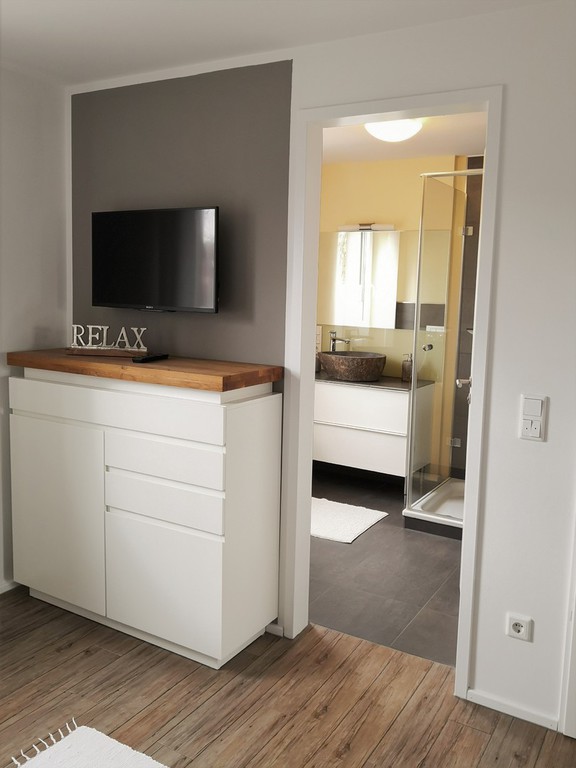 Dieses Appartement ist 55 qm groß und befindet sich im 1. Geschoss unseres Hauses. Die Wohnung ist sehr hell, da von morgens bis abends die Sonne mitwandert. Ein kleiner Balkon lädt am Abend zum Verweilen ein.